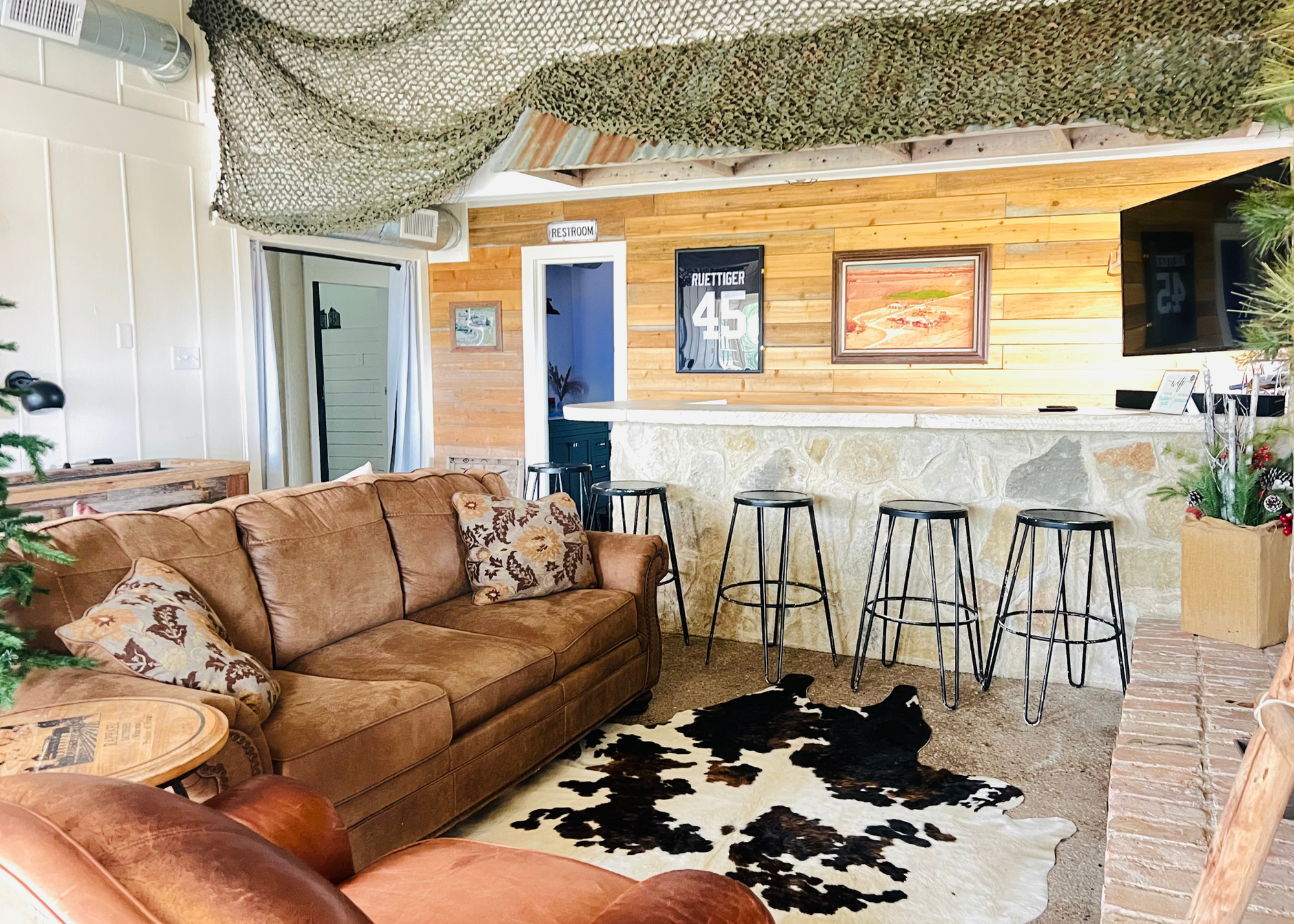 The best seat at the venue, our overnight suites offer breathtaking views of the Dallas skyline, glowing sunsets, the Glass House, and the iconic ceremony arch. Accommodating up to 10 guests, each suite is thoughtfully designed and includes a comfortable bed, TV, access to the barn patio, and a full bathroom.