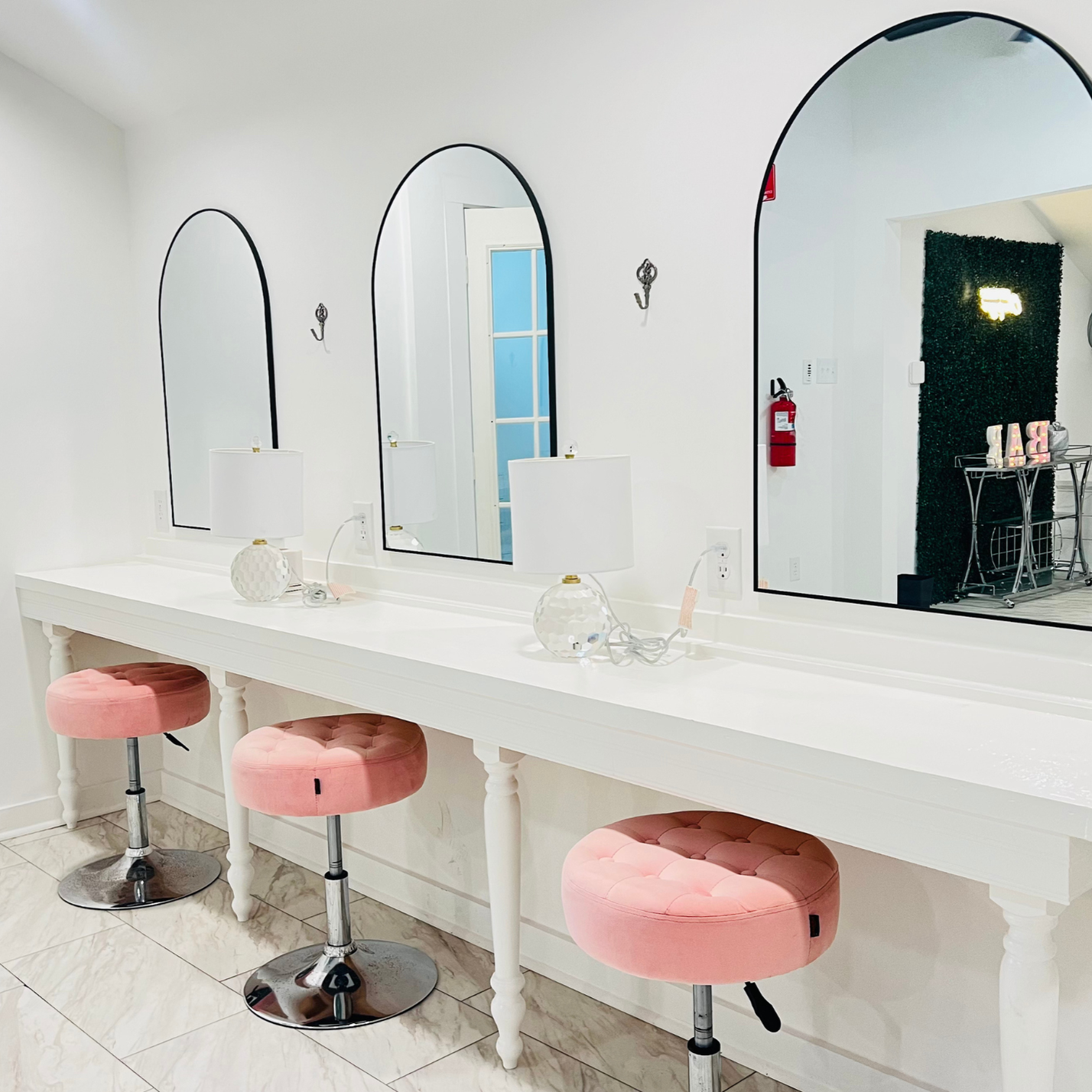 Designed with a luxurious feel, our bridal suite features six vanities, a furnished lounge, a half kitchen, and a full-length mirror—creating the ultimate getting-ready space for you and your girls. Natural light pours through the windows so hair and makeup look flawless, while the iconic window overlooking the Dallas skyline delivers the dreamiest photo backdrop.